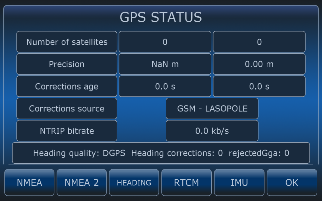 For receiver checking purposes GNSS status menu is available. Depending on the receiver type user can check if GNSS reciever is working properly.